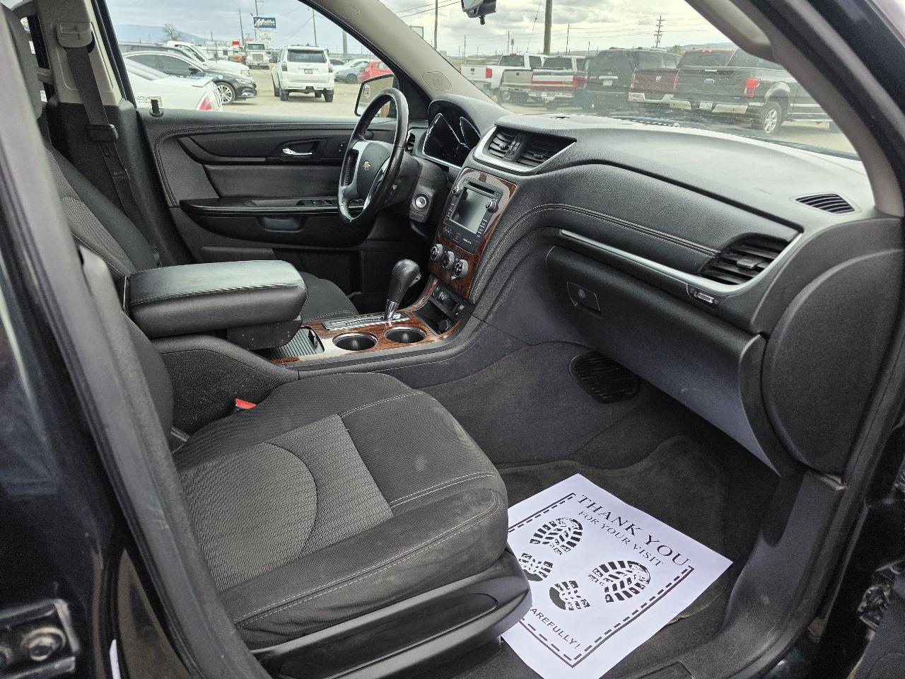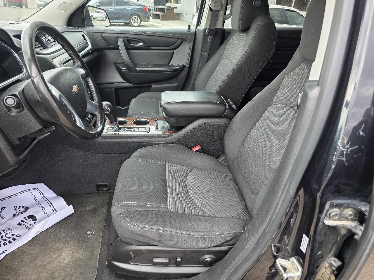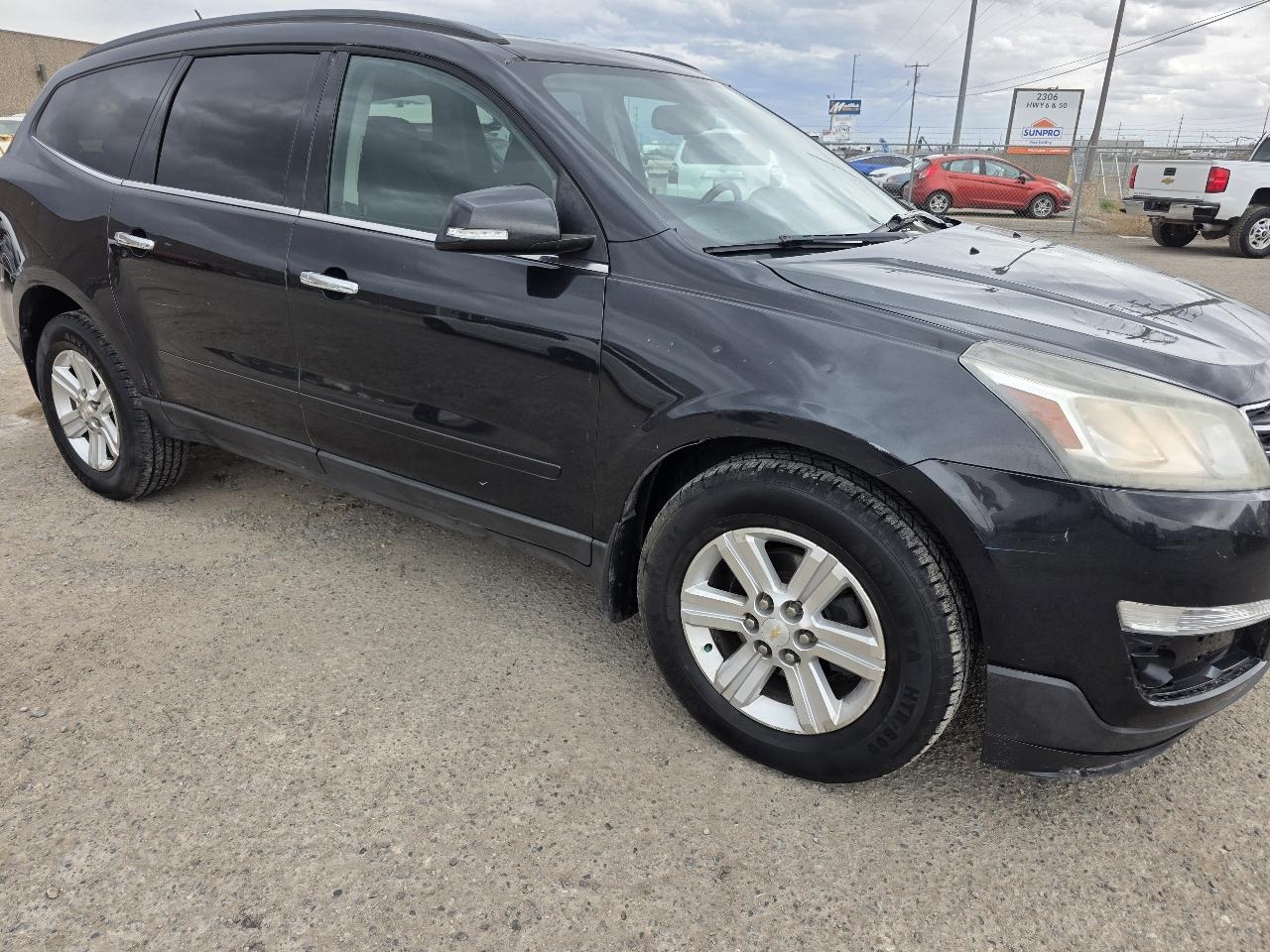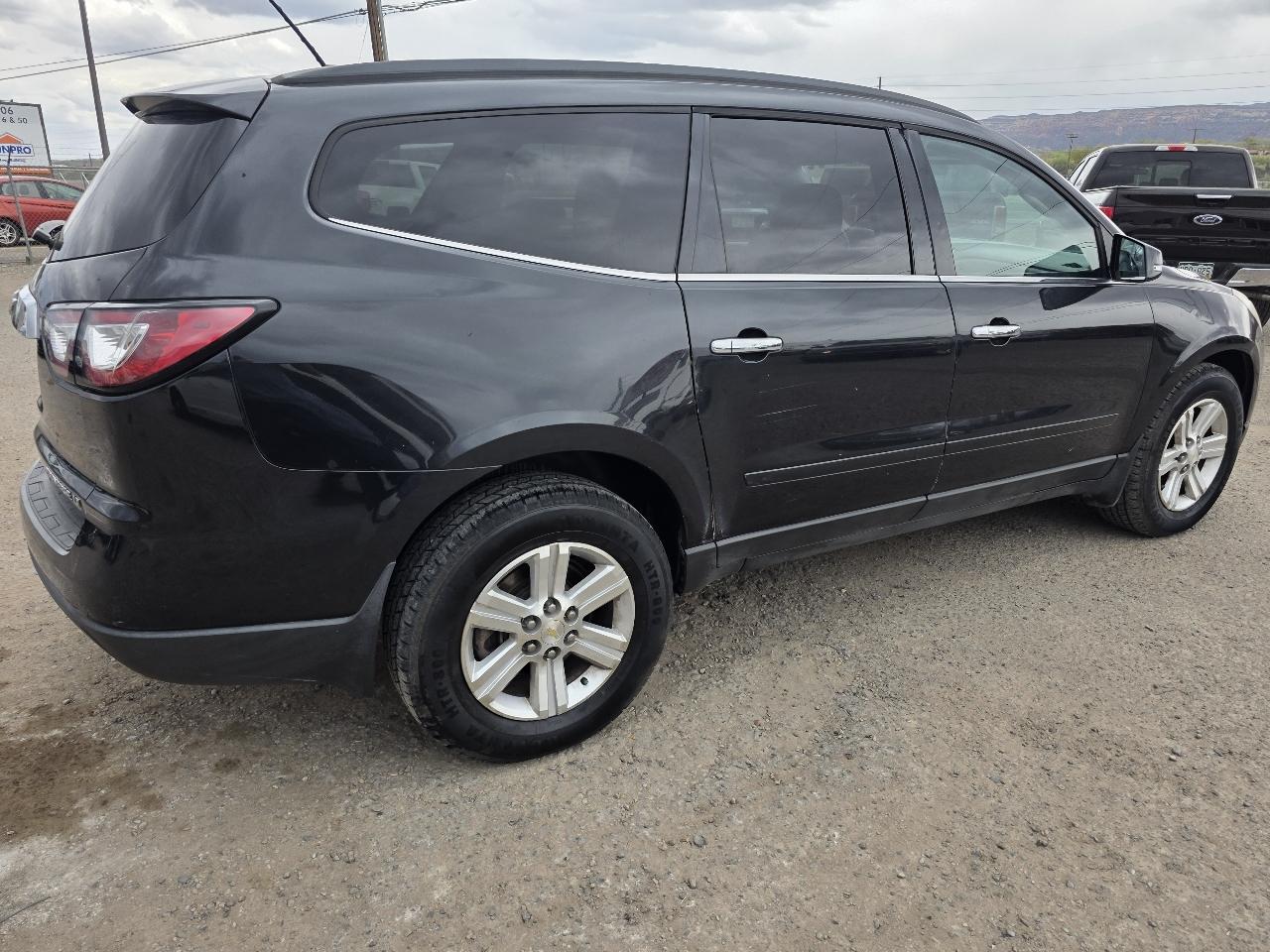 Come see this affordable 2014 Chevy Traverse AWD SUV. This Traverse has a nice cloth interior, power windows, locks, mirrors, third row seating, good tires. This is an affordable AWD SUV with room for the family in the back or lots of storage.